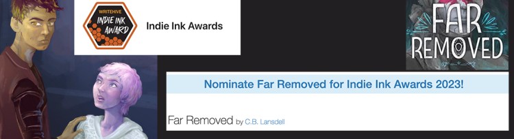 That being said, I recently learned that Far Removed was submitted for the Indie Ink Awards. This took me by surprise – I had hoped someone might submit it next year. I would love for it to get into the next round in 1 category. The trouble is, it published quite late in the year, and I am still building my reader base. People can’t vote for what they don’t know. If you are inclined to vote for it, you can sign up with Indie Story Geek here: