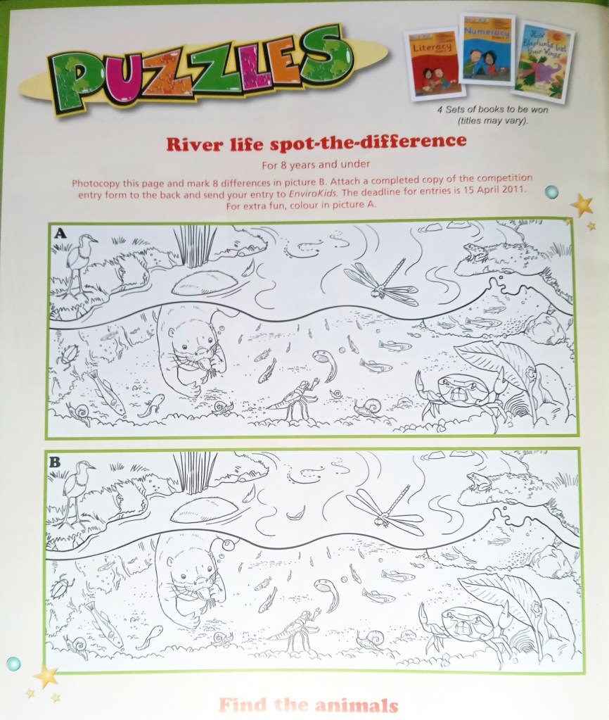 I loved Envirokids magazine, and could fully support their aim to instil an appreciation for nature in children. I worked with them for about 3 or 4 years. They eventually came under new management and had to change their design team. I don’t know if they are still around. You can have some fun with the spot-the-difference activity page.